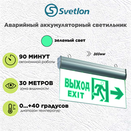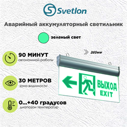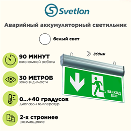 Светильник информационный аварийный "Выход" белый свет 360X225мм аккумуляторный 2-сторонний