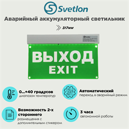 Светильник информационный аварийный "Выход" белый свет 317X203мм аккумуляторный с 1 стикером 120мин