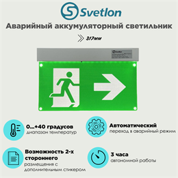 Светильник информационный аварийный "Стрелка направо/налево" белый свет 317X203мм аккумуляторный с 1 стикером 120мин
