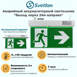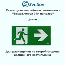 Светильник информационный аварийный "Выход/стрелка/направо 24м" белый свет 317X203мм аккумуляторный с 1 стикером 120мин