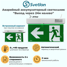 Светильник информационный аварийный "Выход/стрелка/налево 24м" белый свет 317X203мм аккумуляторный с 1 стикером 120мин