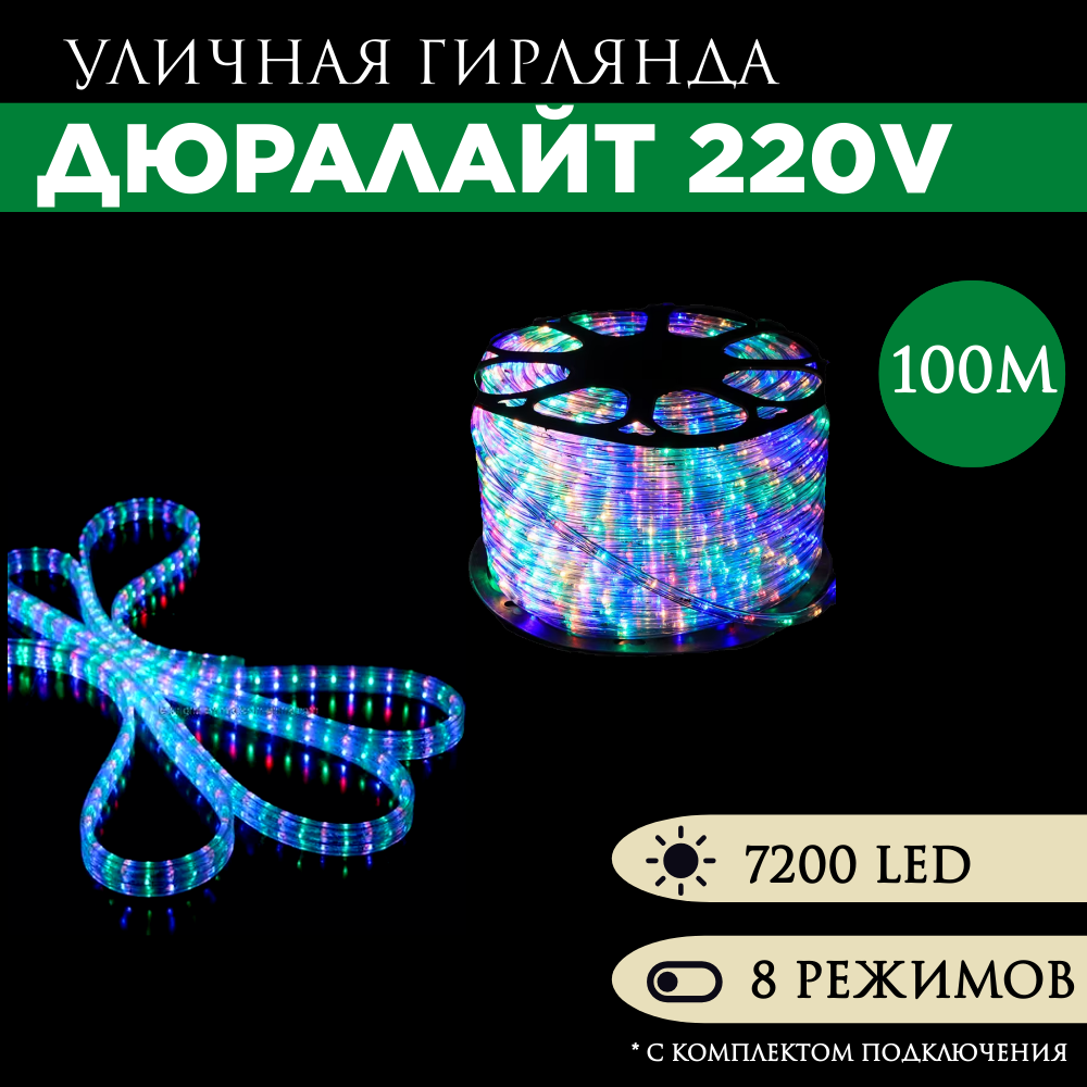 Дюралайт квадратный плоский 100м 8 режимов свечения мульти разноцветный 11X17.5мм 3-х жильн. 72LED/м 4.32Вт/м с комплектом подключения