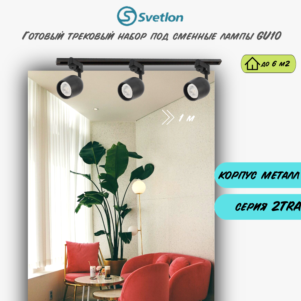 Готовый трековый набор с 3-мя спотами светильниками трековыми с патроном GU10.
