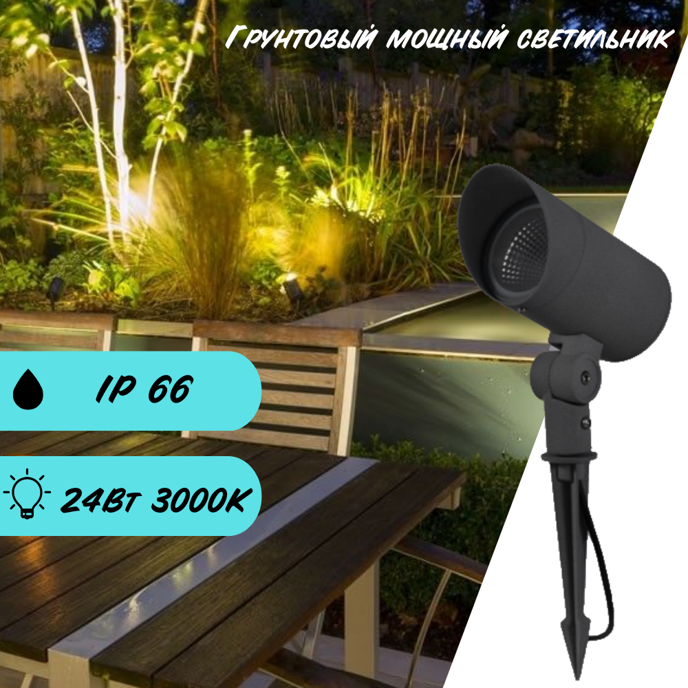 Грунтовый светодиодный светильник высокой мощности 24Вт 3000К IP66 ландшафтный 39X19,5X9см