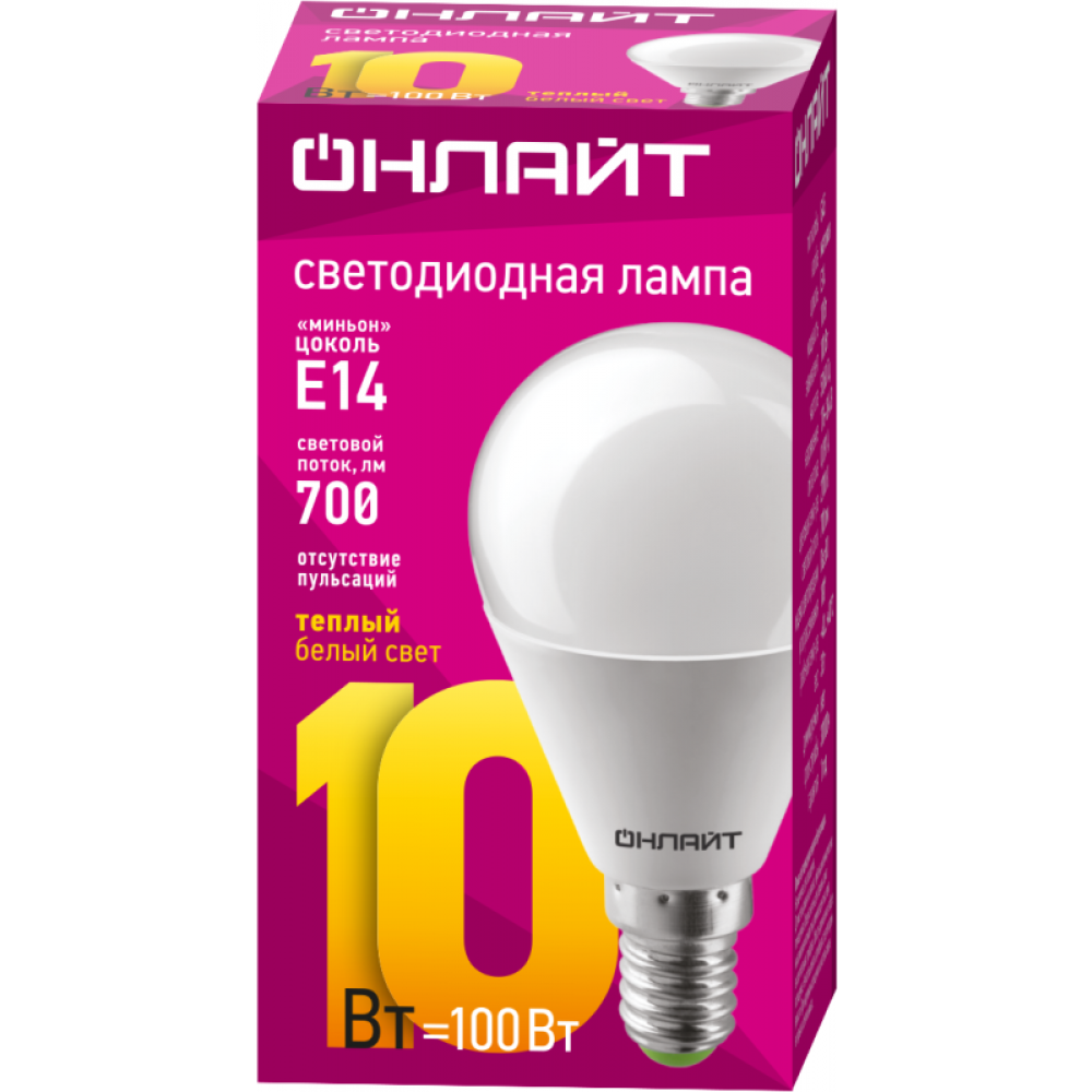 Лампа светодиодная E14 шар 10W 2700K OLL-G45-10-230-2,7K-E14-FR 61965 ОНЛАЙТ