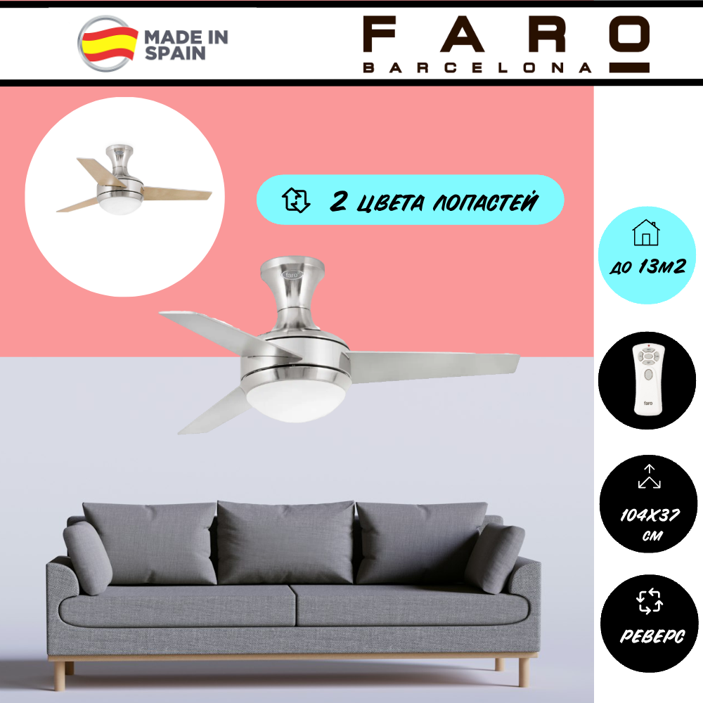 Люстра вентилятор потолочный Faro Barcelona 104X37 СМ IP20 13 м2 2XЕ27 с пультом ДУ двигатель AC-стандарт никель/коричневый