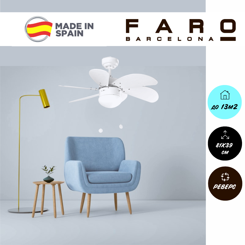 Люстра вентилятор потолочный Faro Barcelona 81X39 СМ IP20 13 м2 1XЕ14 тяговые цепи двигатель AC-стандарт белый