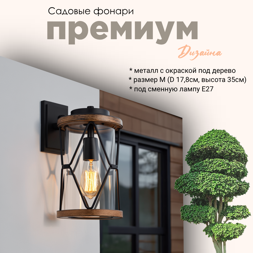 Корпус светильника изготовлен методом литья из алюминиевого сплава, плафон — из стекла. Заводская порошковая покраска и качественные материалы обеспечивают долговечность и защиту от коррозии. Особый дизайн с имитацией деревянных элементов придает светильнику уникальный стиль, гармонично сочетая современность и уют.