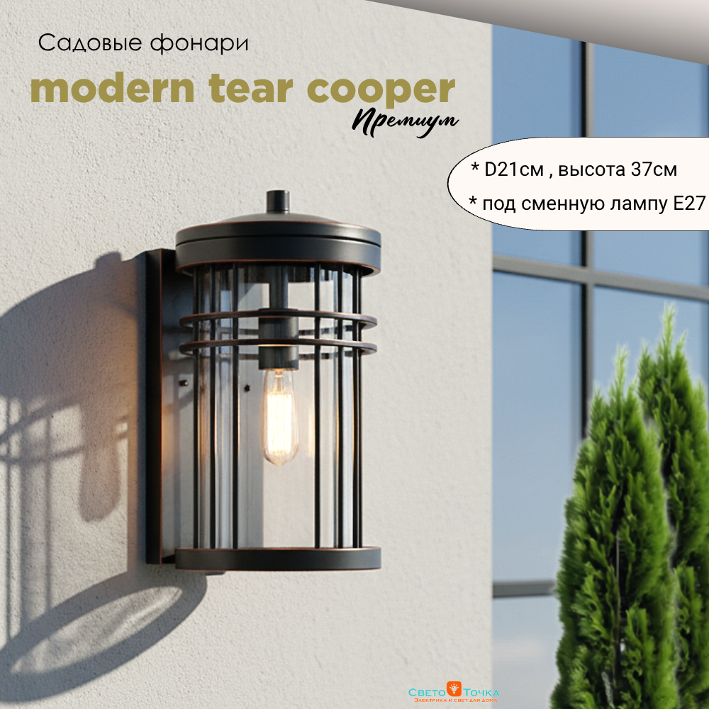 Уличный фонарь настенный, черный-медь (tear cooper), E27