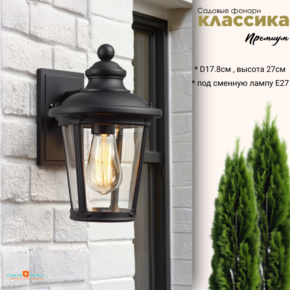 Уличный фонарь настенный классический IP44, E27 – надежное и стильное решение для освещения фасадов зданий, садово-парковых зон, придомовых территорий, террас и летних площадок ресторанов или кафе. Его универсальный дизайн позволяет использовать модель как в уличных условиях, так и в интерьерах, где требуется выразительный акцент в классическом стиле.