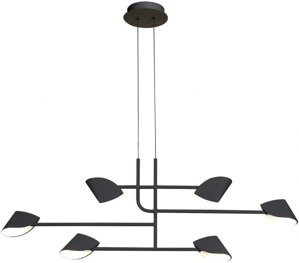 Дизайн коллекции CAPUCCINA вдохновлен кинетическими скульптурами американского художника Александра кальдера. Уникальность коллекции заключена в балансе между спокойствием и динамичностью композиции светильника. Еще одна оригинальная особенность CAPUCCINA проявляется в форме неправильного конуса, образованного складками металлических пластин. Подвесные и потолочные светильники имеют ярусы, которые можно регулировать, подстраивая светильник под нужды индивидуального интерьера. Светильники CAPUCCINA предназначены для создания ощущения покоя и размеренности в пространстве. Подвесной светильник коллекции может использоваться в качестве главного источника света для гостиной, а настольные лампы, бра и торшеры помогут разделить интерьер на зоны для чтения, работы и отдыха. Ассортимент коллекции CAPUCCINA включает настенные, настольные и напольные светильники. каждый предмет доступен в черном и белом цвете со светодиодами теплого оттенка. Люстра подвесная светодиодная дизайнерская горизонтальной формы современная большая над столом над барной стойкой 45 Вт 3000К регулируемая высота 39.3-72см для гостиной/в зал в спальню на кухню в холл в прихожую/в коридор цвет черный модерн хай-тек 110*15 см