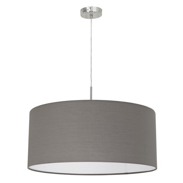 Подвесной светильник бренда Eglo, из серии Pasteri, рекомендуется для установки: Для гостиной в стиле Модерн. Цоколь: E27, диаметр - 53, материал арматуры: Металл, цвет арматуры: Никель, материал плафонов/абажуров: Ткань, цвет плафонов/абажуров: Коричневый, количество ламп: 1.