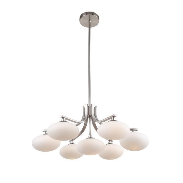 Люстра потолочная бренда Favourite, из серии Pernetti, рекомендуется для установки: Для гостиной в стиле Современный. Цоколь: G9, диаметр - 64, материал арматуры: Металл, цвет арматуры: Никель, материал плафонов/абажуров: Стекло, цвет плафонов/абажуров: Белый, количество ламп: 7.