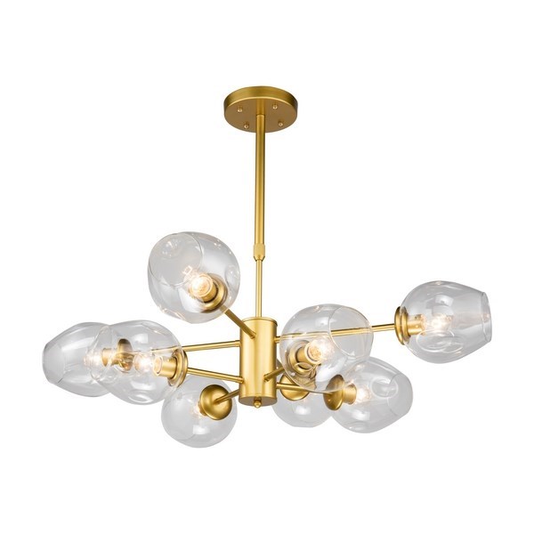 Люстра на штанге бренда Favourite, из серии Recens, рекомендуется для установки: Для гостиной в стиле Современный. Цоколь: E27, диаметр - 85, материал арматуры: Металл, цвет арматуры: Золото, материал плафонов/абажуров: Стекло, цвет плафонов/абажуров: Прозрачный, количество ламп: 8.