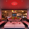 Большой функционал (димер и разные цвета освещения), управление через приложение, можно настроить любой цвет освещения, смотрится достойно, удобство пульта (не обязательно направлять на люстру).