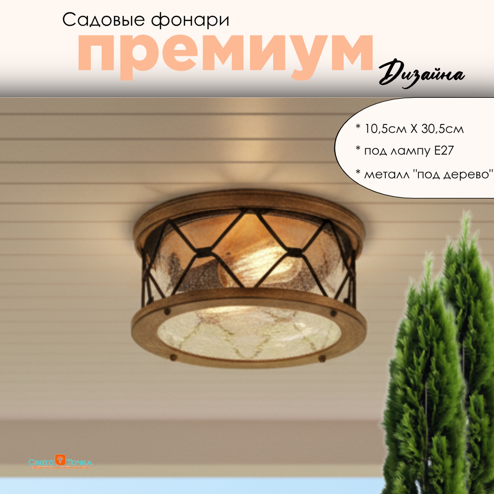Уличный потолочный светильник фонарь на веранду 30,5*10,5см Е27 круглый черный/дерево (цвет под дерево) IP44