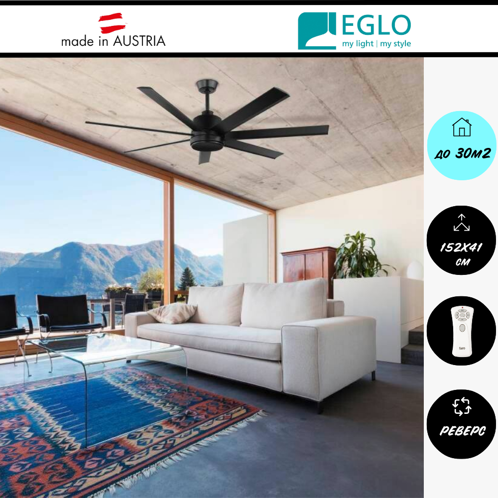 Создайте комфортный микроклимат в вашем доме с помощью стильного австрийского потолочного вентилятора от Eglo! Эта элегантная модель для вентиляции, в в стиле модерн, лофт, станет украшением вашей гостиной, спальни или закрытой веранды. Благодаря 5 скоростям вращения и функции реверса, вентилятор обеспечивает приятное охлаждение летом и циркуляцию воздуха зимой на площади до 25-30 м2. Оснащен двигателем DC-бесшумный. Лопасти, цвет - черный, материал лопастей - металл, цвет арматуры - черный. Управление вентилятором осуществляется с помощью удобного пульта управления. Данная модель имеет дополнительную функцию — таймер. Гарантия 2 года. .создайте идеальный комфорт в вашем доме с помощью потолочного вентилятора!