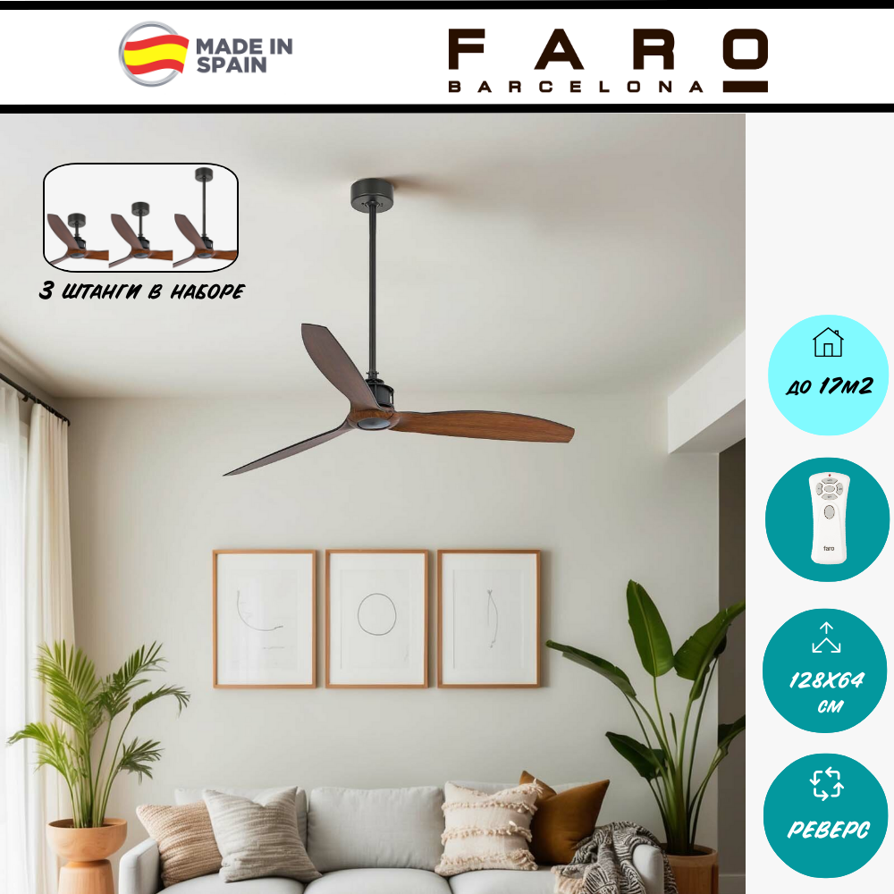 Потолочный вентилятор Faro Barcelona 128X64 СМ IP20 13-17 м2 с пультом ДУ 6 скоростей двигатель DC-бесшумный черный/коричневый