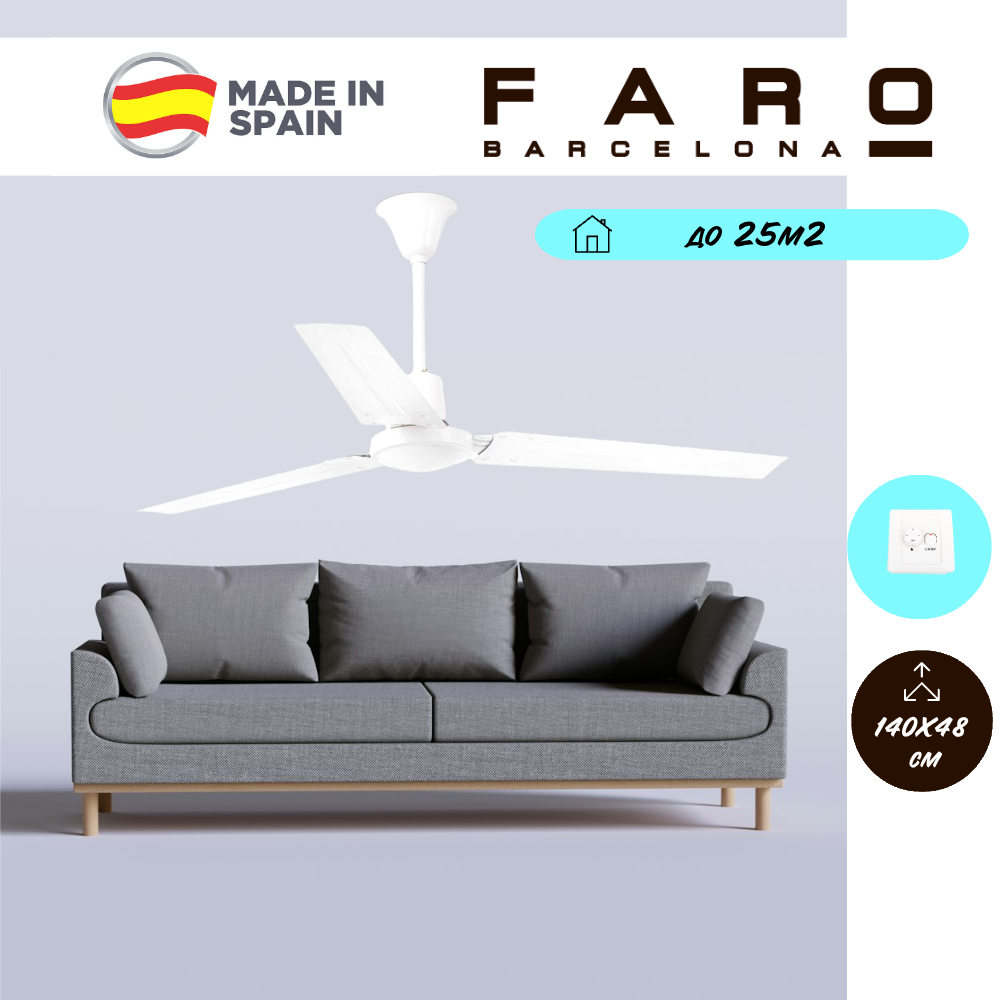 Потолочный вентилятор Faro Barcelona 140X48,3 СМ IP20 18-25 м2 настенный переключатель 5 скоростей двигатель AC-стандарт белый