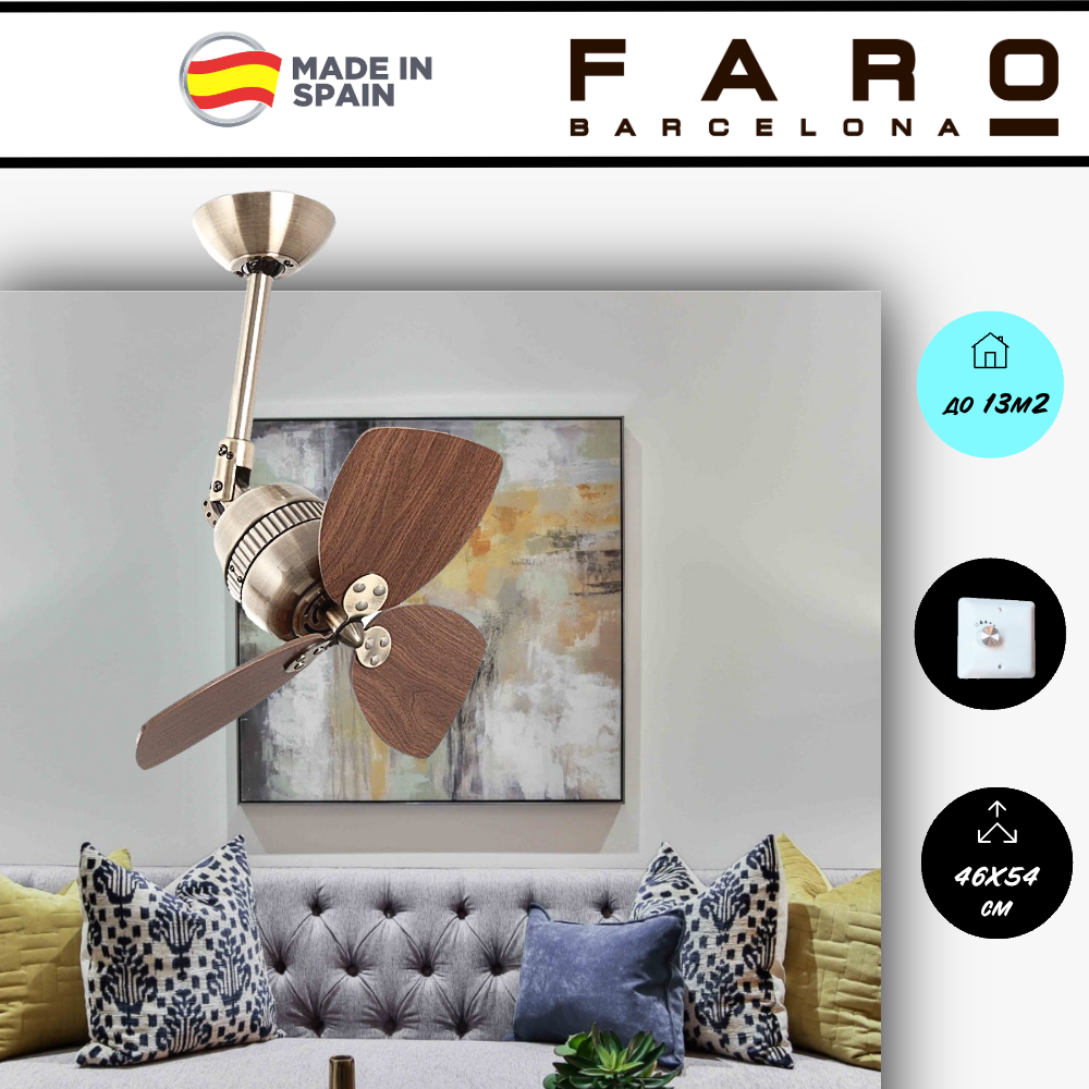 Потолочный вентилятор Faro Barcelona 46X54 СМ IP20 13 м2 настенный переключатель 4 скорости двигатель AC-стандарт бронза/грецкий орех