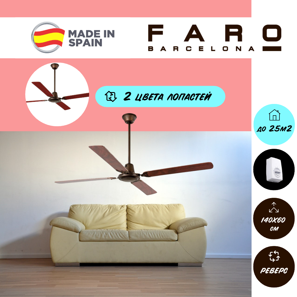 Потолочный вентиялтор Faro Barcelona 140X60 СМ IP20 18-25 м2 настенный переключатель 5 скоростей двигатель AC-стандарт коричневый