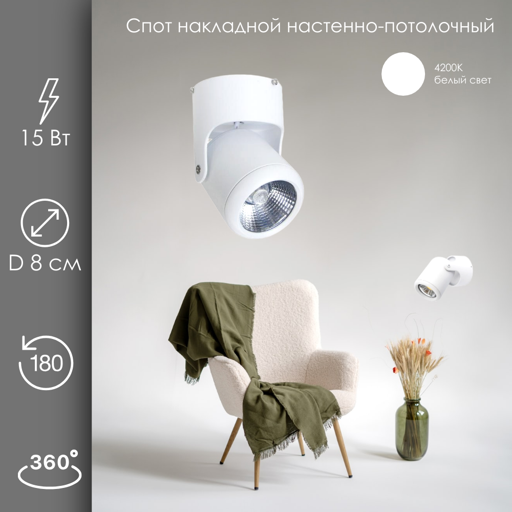 Поворотный светодиодный спот белый 15Вт, 4200К — точечный акцент на стиль и комфорт