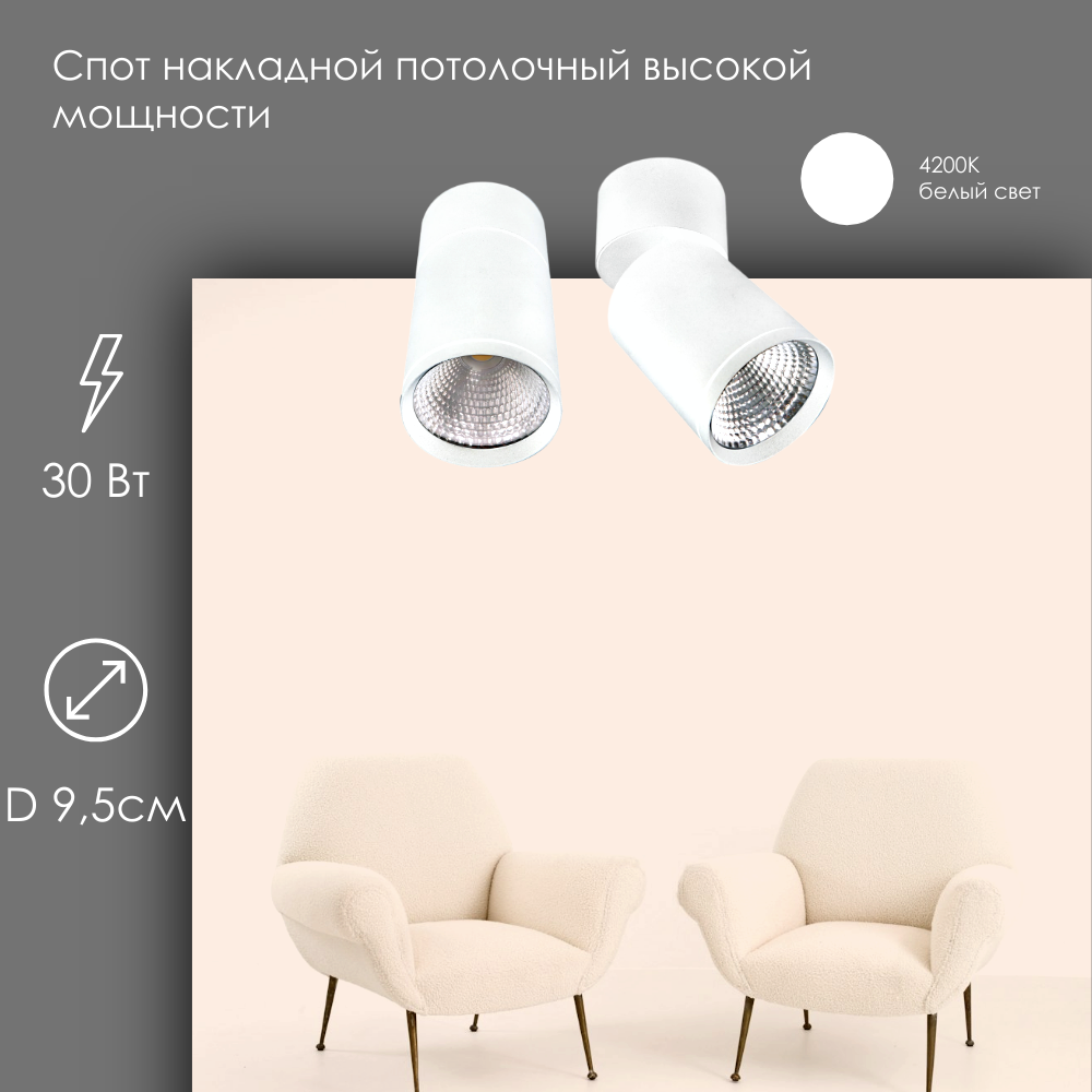 Поворотный потолочный спот 30Вт, 4200К — мощный акцент на комфорт и стиль