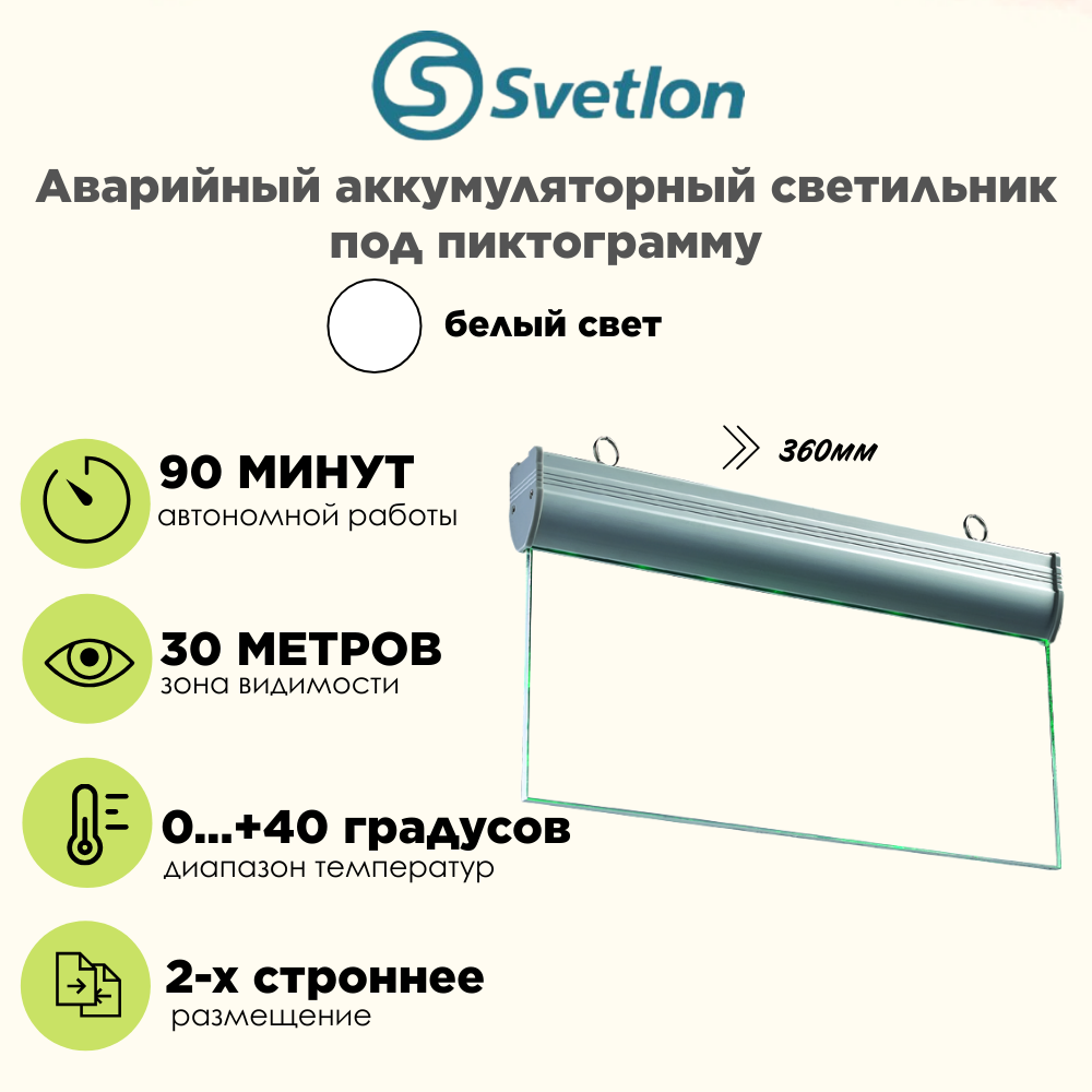 Светильник информационный аварийный основа под пиктограмму белый свет 360X225мм аккумуляторный 2-сторонний
