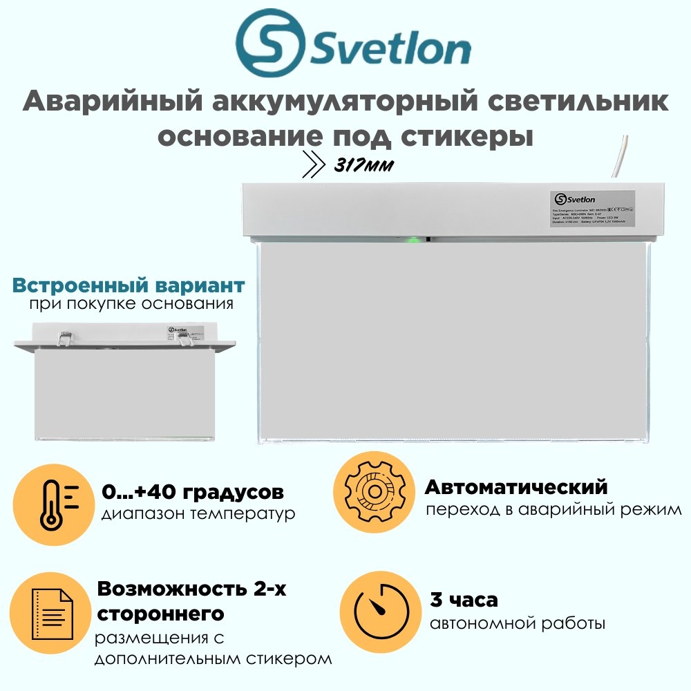 Светильник информационный аварийный основание под стикеры белый свет 317X203мм аккумуляторный 120мин