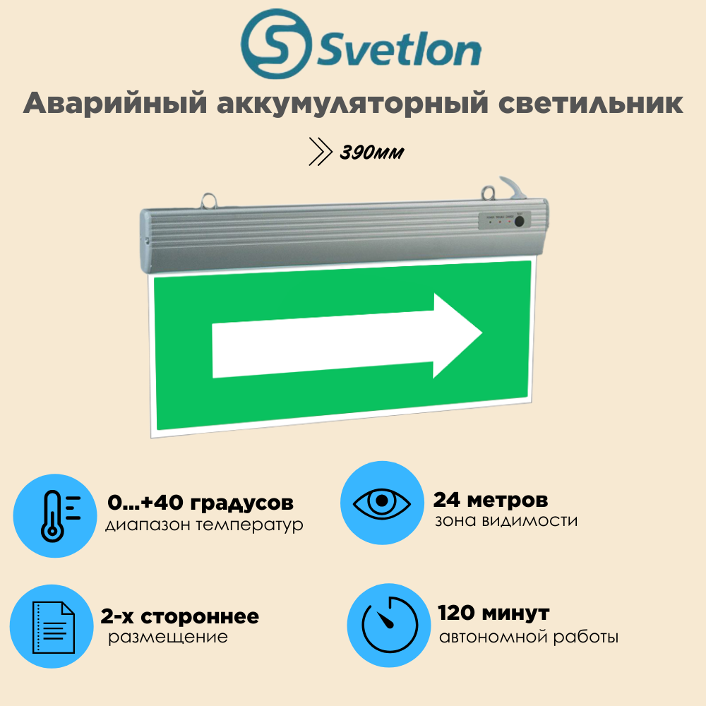 Светильник информационный аварийный "Стрелка" белый свет 390X200X25мм аккумуляторный 120 мин. двухсторонний