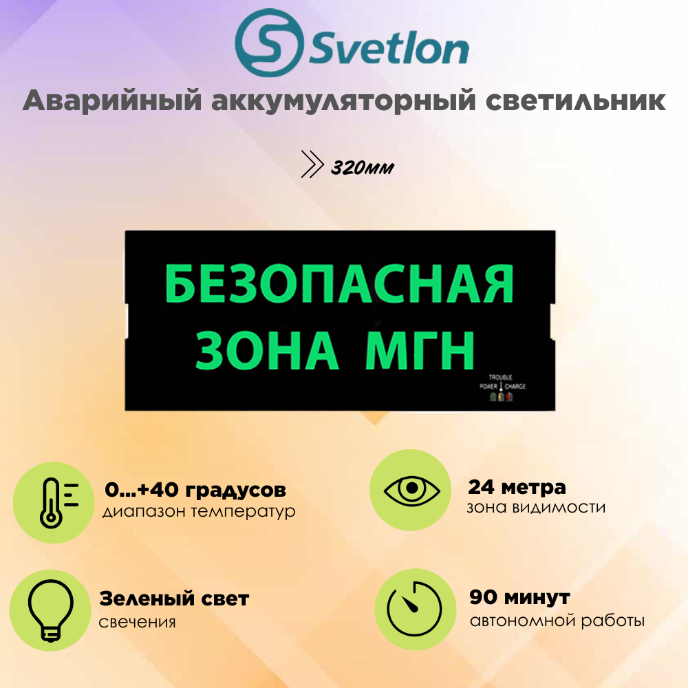 Светодиодный светильник (световой указатель аварийного типа), модель "<Безопасная зона для МГН" предназначен для установки в местах массового пребывания людей, общественных и административных учреждениях, в офисах для указания конкретного местоположения или как источник дополнительной информации.