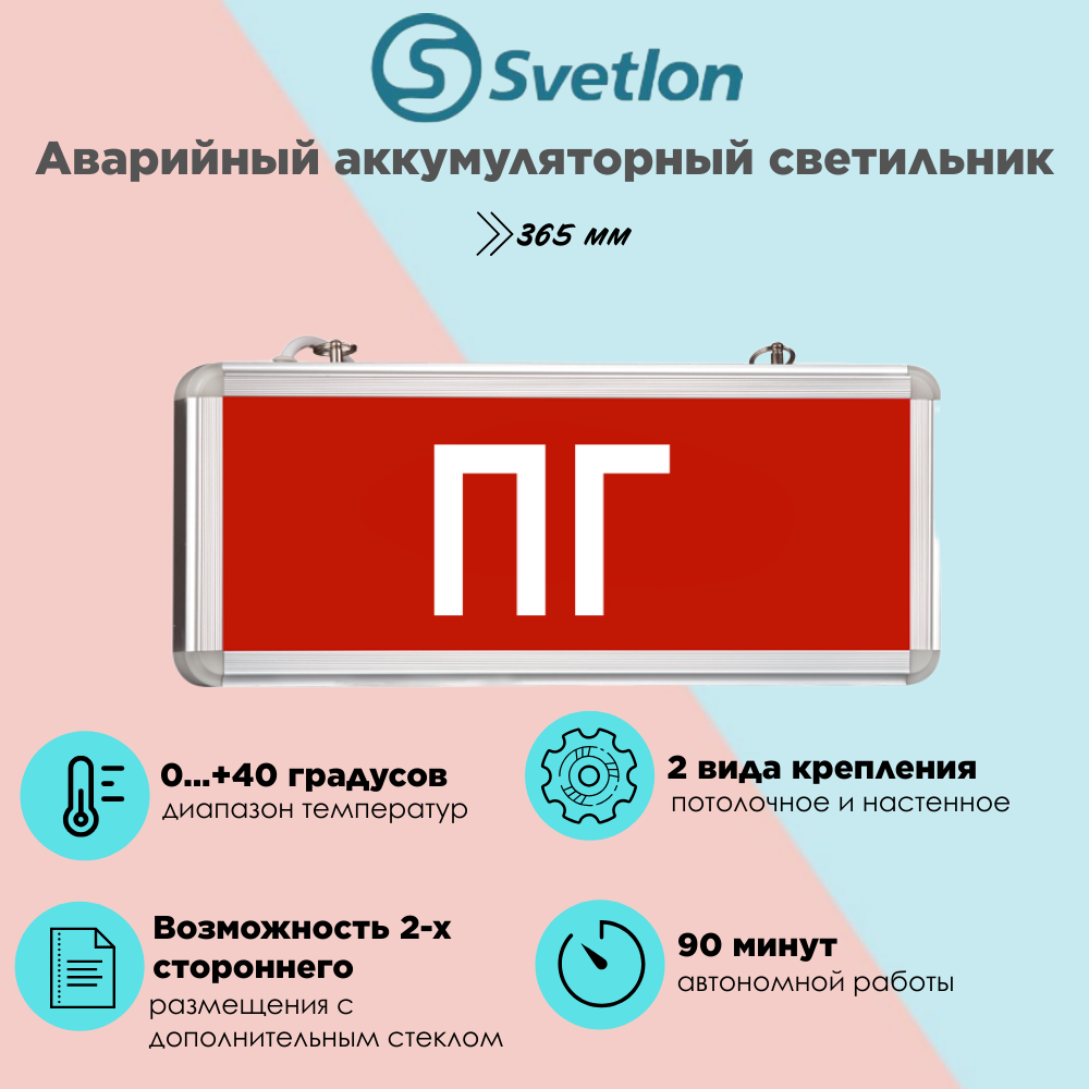 Светильник информационный аварийный, световой указатель "ПГ" пожарный гидрант 365X153X25мм аккумуляторный с 1 стеклом 90 мин