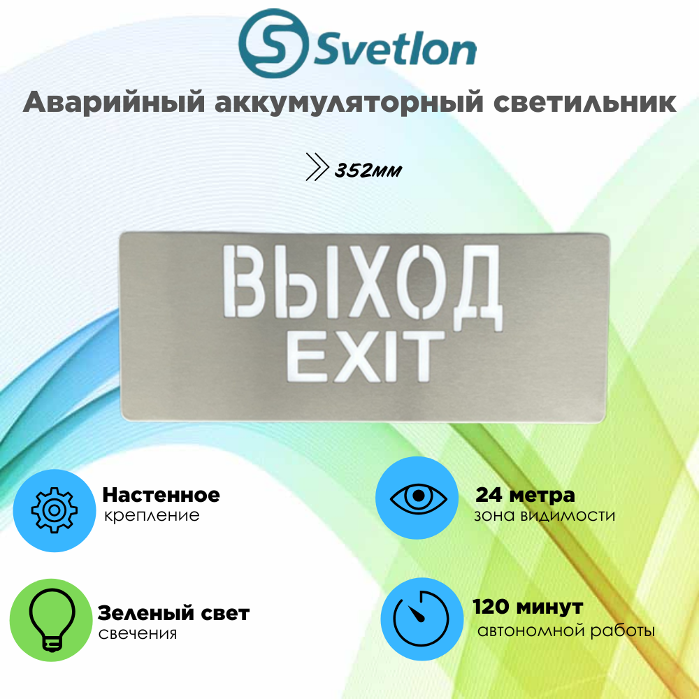 Светильник информационный аварийный, световой указатель "Выход" 352X138X8мм аккумуляторный настенный 120 мин