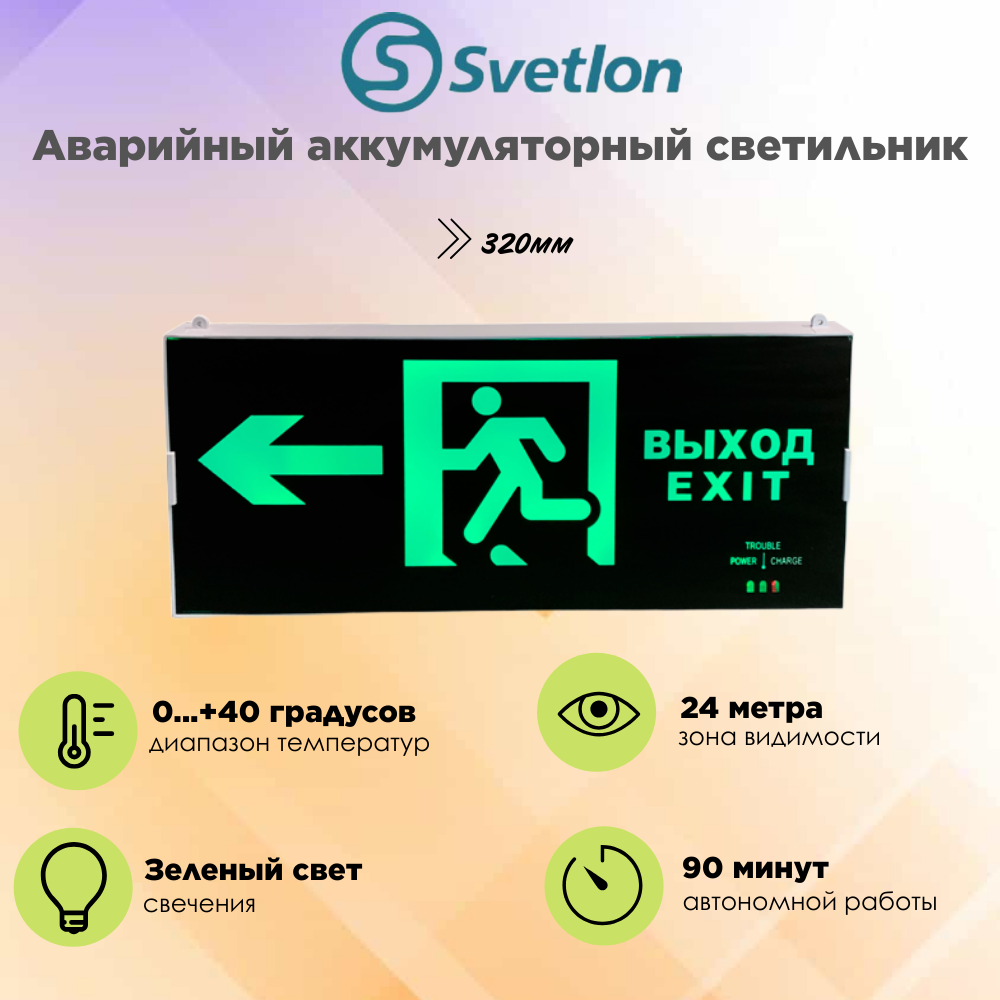 Светильник информационный аварийный, световой указатель "Выход налево стрелка бегущий" 321X126X19мм аккумуляторный с 1 стеклом 90 мин