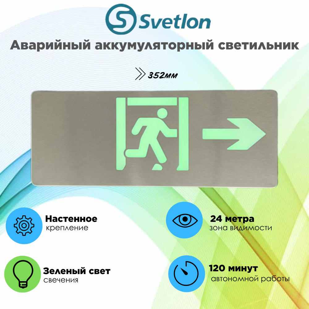 Светильник информационный аварийный, световой указатель "Выход направо стрелка бегущий" 352X138X8мм аккумуляторный настенный 120 мин