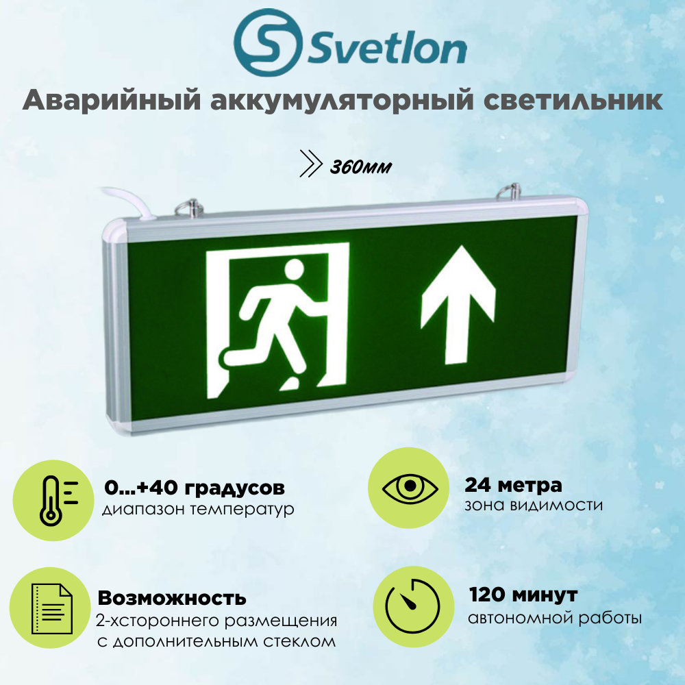 Светильник информационный аварийный, световой указатель "Выход наверх стрелка бегущий" 360X150X22мм аккумуляторный с 1 стеклом 120 мин