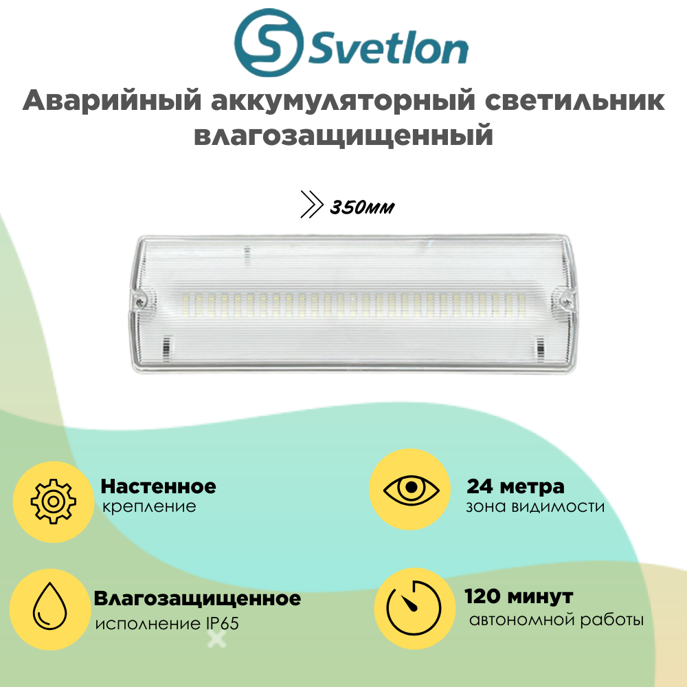 Светильник информационный аварийный, влагозащищенный IP65 350X110X55мм аккумуляторный 120 мин
