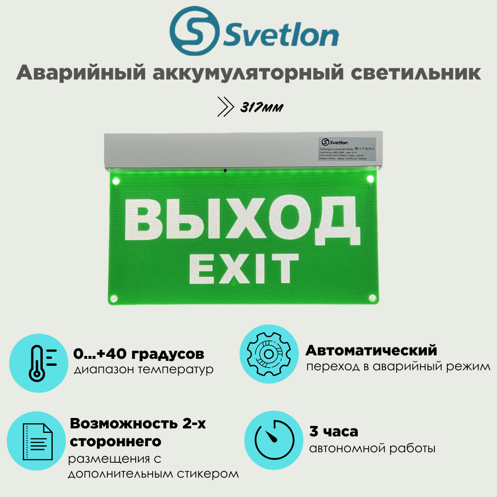 Светильник информационный аварийный "Выход" белый свет 317X203мм аккумуляторный с 1 стикером
