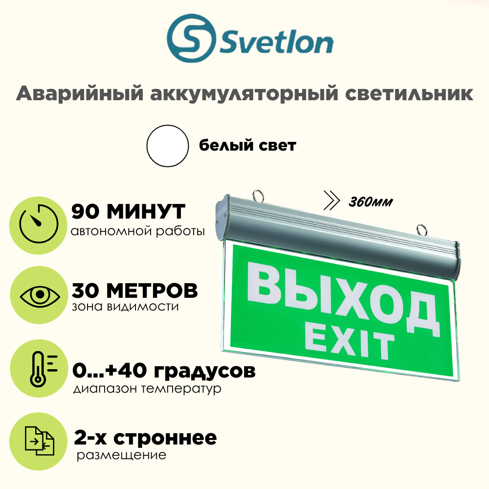 Светильник информационный аварийный "Выход" белый свет 360X225мм аккумуляторный 2-сторонний