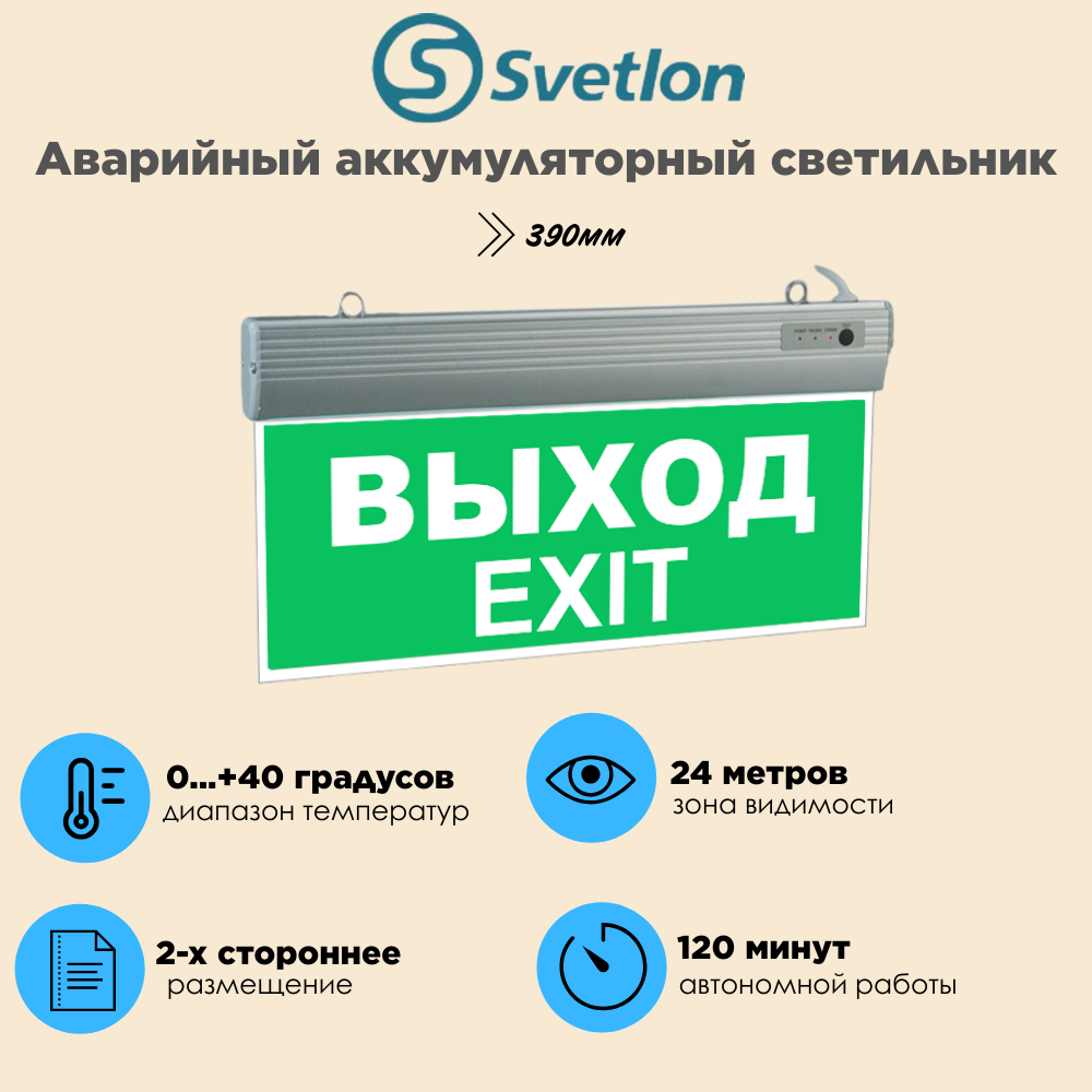 Светильник информационный аварийный "Выход" белый свет 390X200X25мм аккумуляторный 120 мин. двухсторонний
