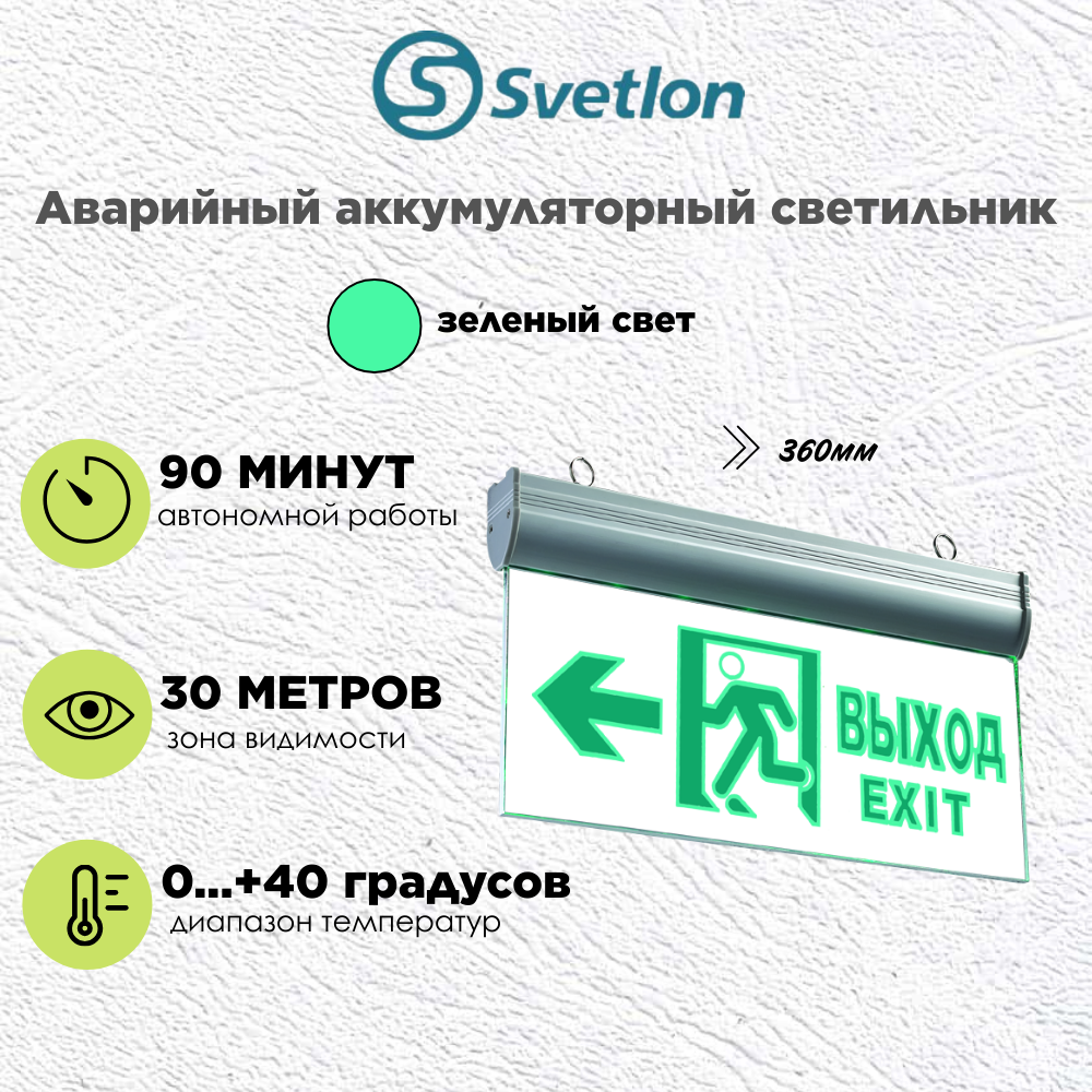 Светильник информационный аварийный "Выход налево" зеленый свет 360X225мм аккумуляторный