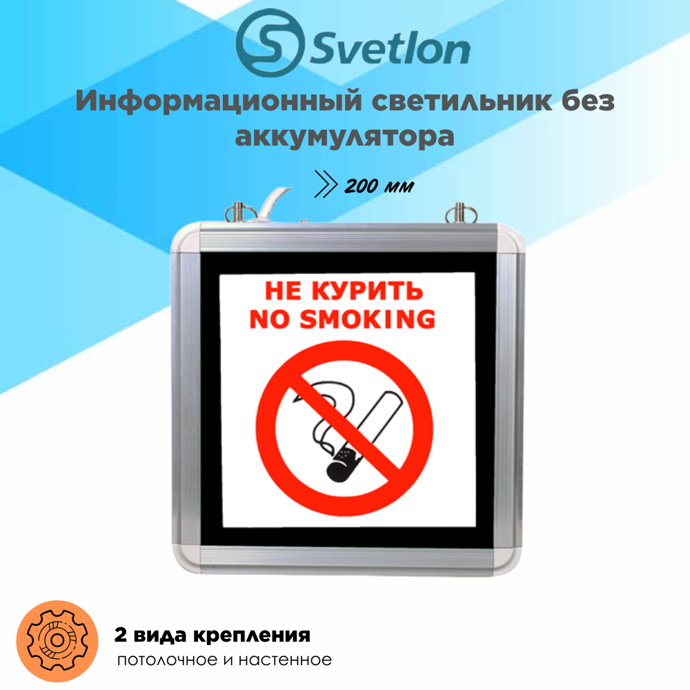 Светильник информационный, световой указатель "Не курить" 200X200X29мм с 1 стеклом без аккумулятора