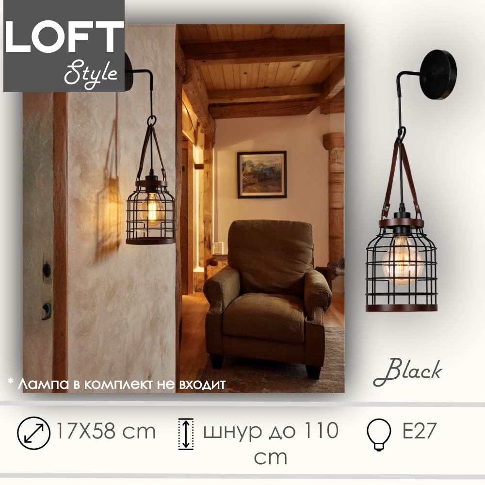 Светильник настенный бра подвесной в стиле лофт, черный-коричневый, 17×20см, высота 58см