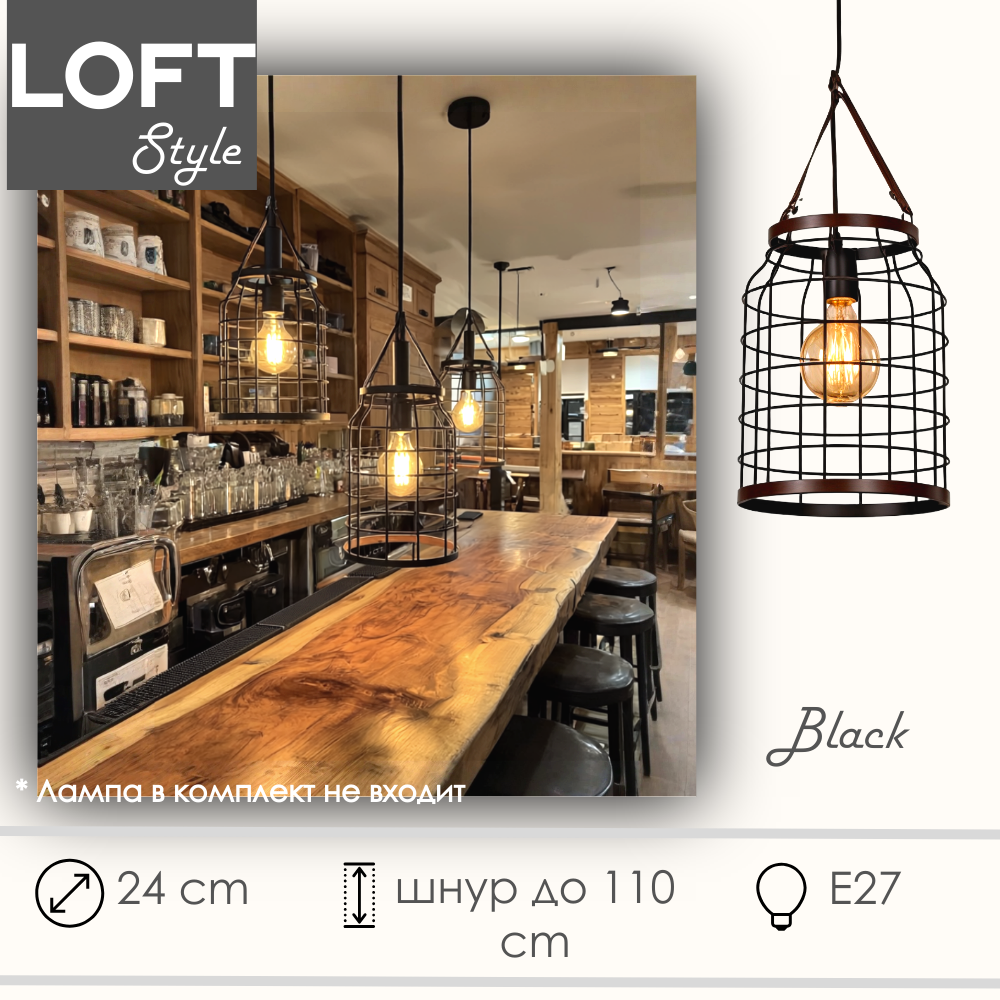 Светильник подвесной в стиле лофт, черный-коричневый, 24×32 см, шнур до 1,1 м