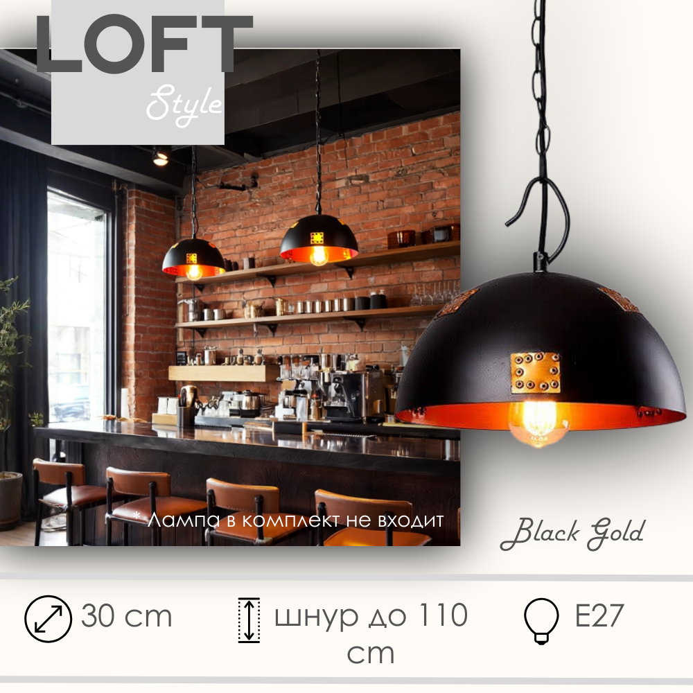 Светильник подвесной в стиле лофт, черный-золото, 30×25,5 см, шнур до 1,1 м