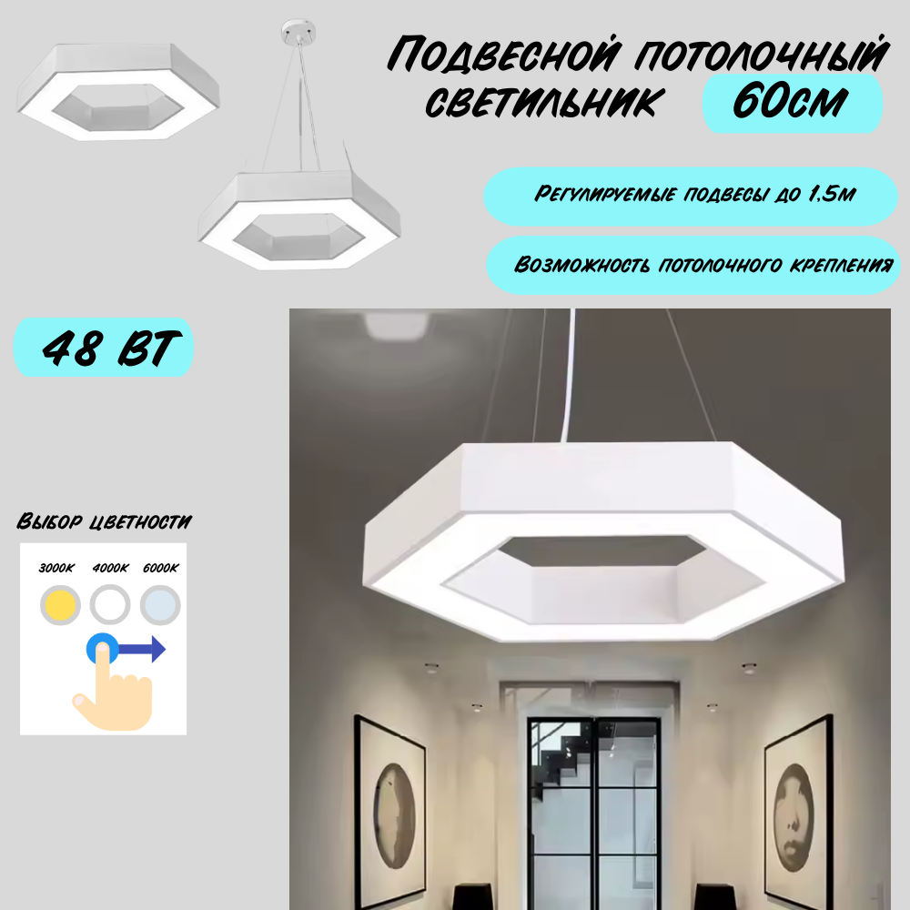 Многофункциональные светодиодные светильники оригинальной шестигранной формы для профессионального освещения холлов, коридоров, зон ресепшен, супермаркетов, магазинов, торговых комплексов, офисов и других общественных помещений, где требуется высококачественное основное освещение или идеальное оформление интерьера.