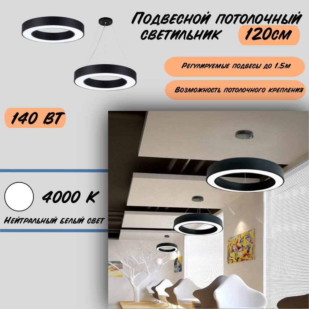 - Цвет корпуса: черный, диаметр 120см, нейтральный белый свет.