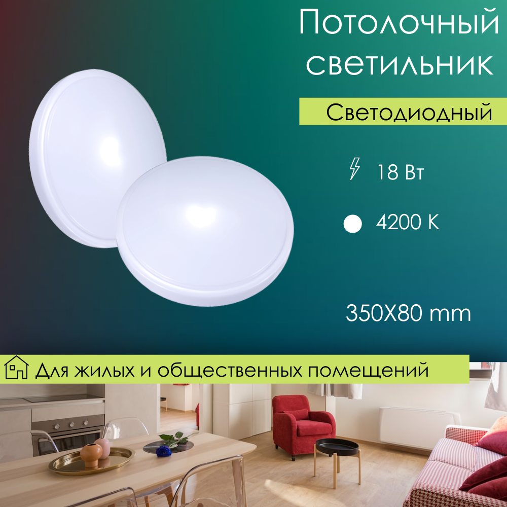 Светодиодный накладной светильник 350×80 мм, 18 Вт, 4200К, белый
