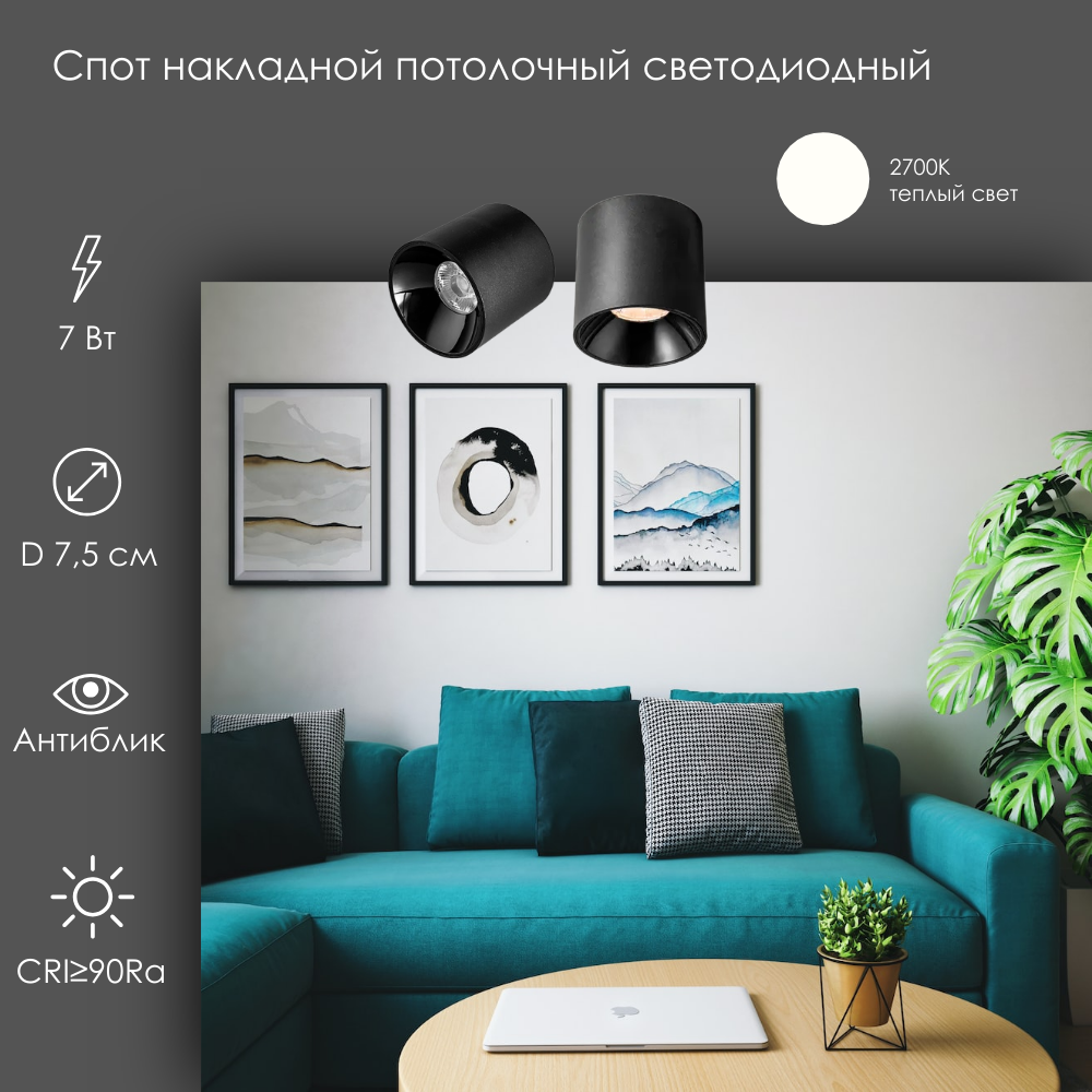 Такой накладной светодиодный спот станет не только источником света, но и стильным элементом интерьера, подчеркивающим детали и создающим уютную атмосферу.