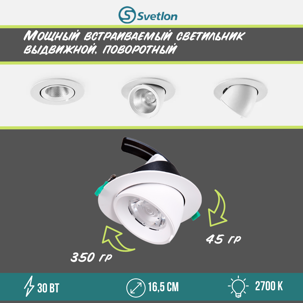 Встраиваемый поворотно-выдвижной светильник - 30W 4200К.